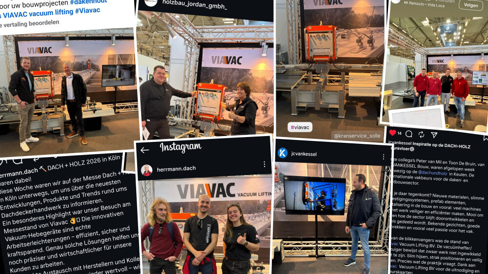 Vom 24. bis 27. Februar 2026 ist VIAVAC auf der Dach+Holz vertreten, der führenden zweijährlichen Fachmesse für die Bau- und Holzindustrie in Köln. Besuchen Sie unseren Stand (Halle 7, Nr. 514) und entdecken Sie, wie unsere innovativen Vakuum-Hebegeräte Ihre Arbeit schneller, sicherer und effizienter machen. Während der Messe profitieren Sie von 10 % Rabatt* auf unser gesamtes Sortiment an Hebemaschinen und haben zudem die Chance, eine Maschine gratis zu gewinnen** (exklusiv für Standbesucher).
