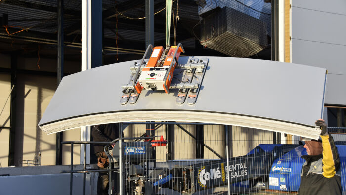 So lassen sich Dach- und Wandpaneele sauber ansetzen, ohne unnötige Belastung für die Mannschaft und ohne Beschädigungen an den Bauteilen.